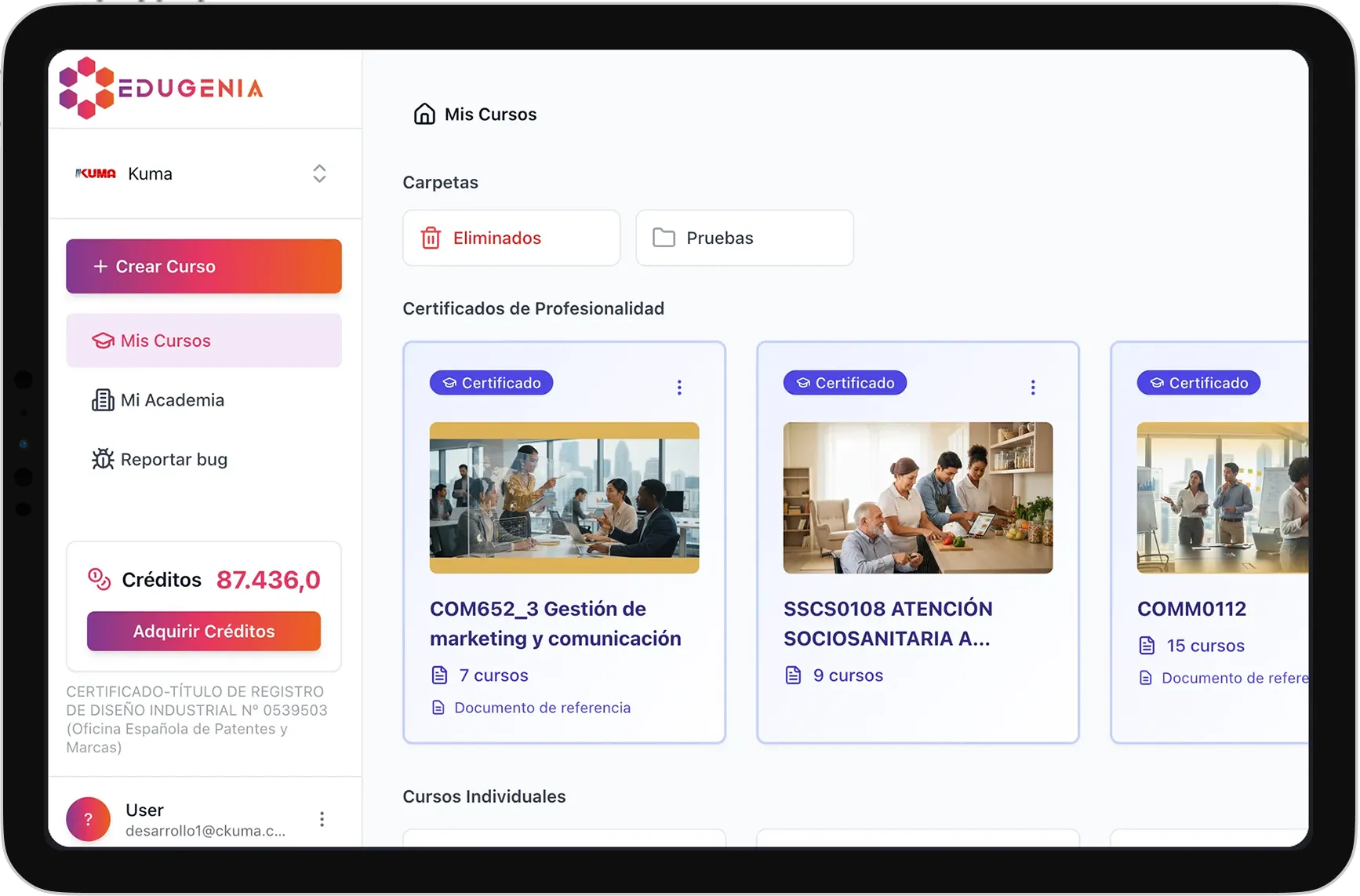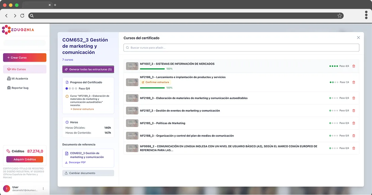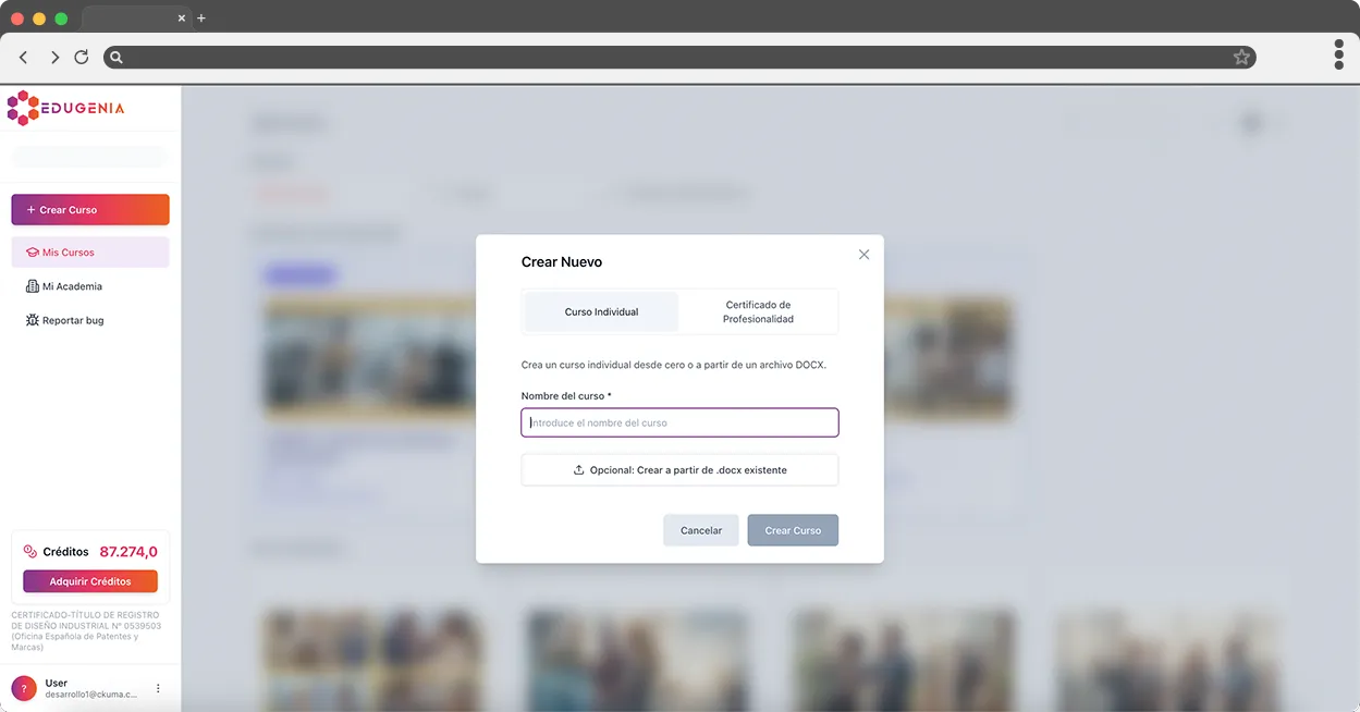 Edugenia facilita la creación de cursos oficiales, ayudando a reducir tiempos y costes mientras el centro y el docente mantienen el control pedagógico del contenido.