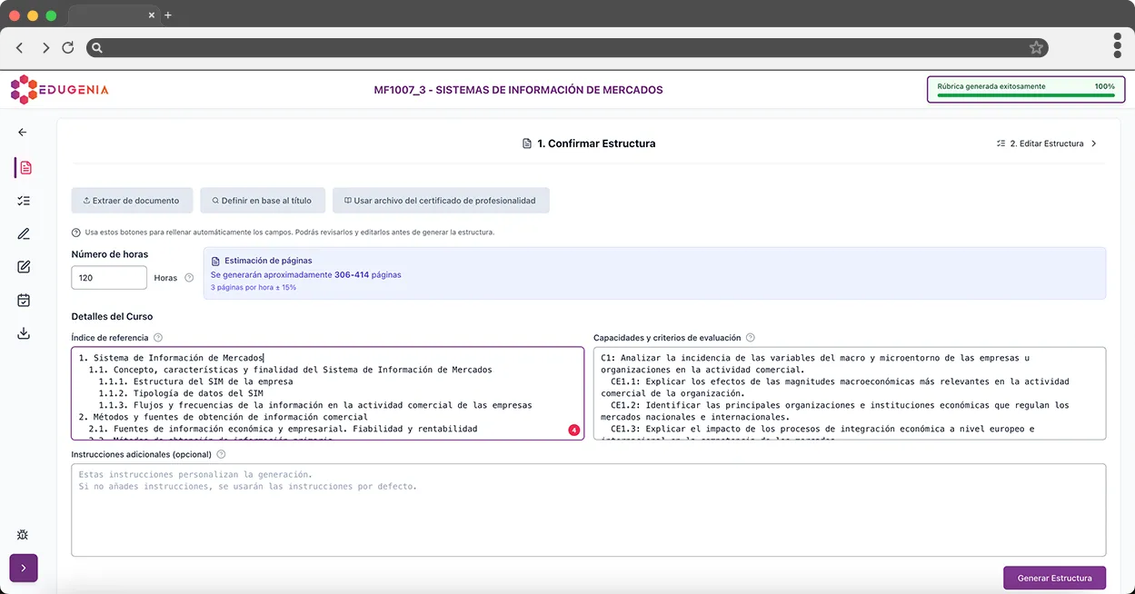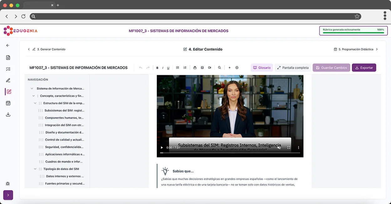 Edugenia es una plataforma especializada en la creación de contenidos formativos oficiales y programaciones didácticas completas, diseñada para centros de formación y docentes profesionales